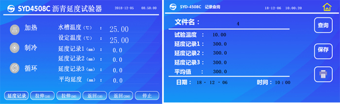 11、延度記錄: 通過觸摸屏“延度記錄”鍵記錄